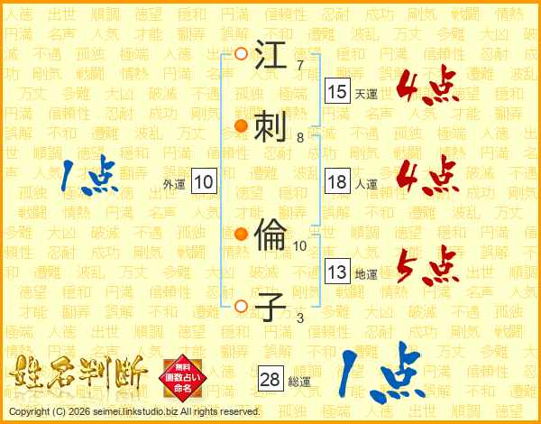 江刺倫子さんの総運は28画の1点!