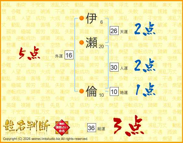 伊瀬倫さんの天運は26画の2点!