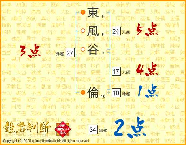 東(8画)風(9画)谷(7画) 倫(10画)