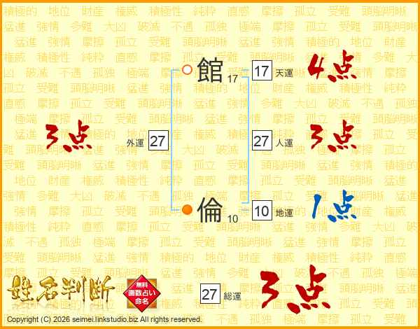 館倫さんの総運は27画の3点!