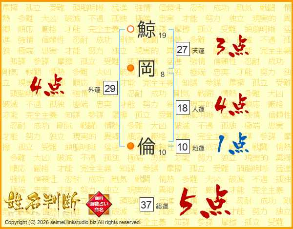 鯨岡倫さんの総運は37画の5点!