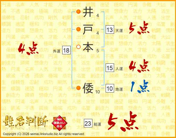 井戸本倭さんの総運は23画の5点!