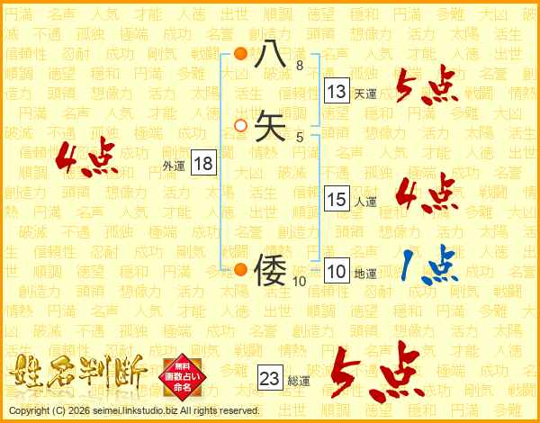 八矢倭さんの総運は23画の5点!