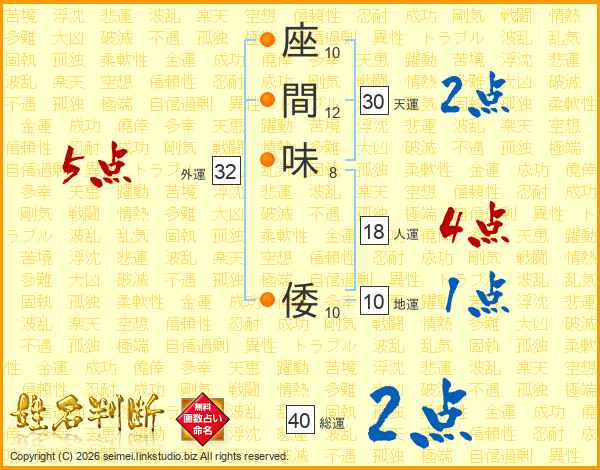 座間味倭さんの天運は30画の2点!