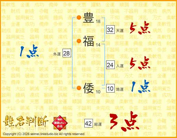 豊福倭さんの天運は32画の5点!