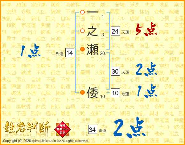 一之瀬倭さんの人運は30画の2点!