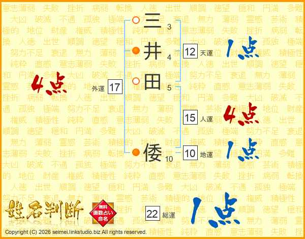 三井田倭さんの総運は22画の1点!