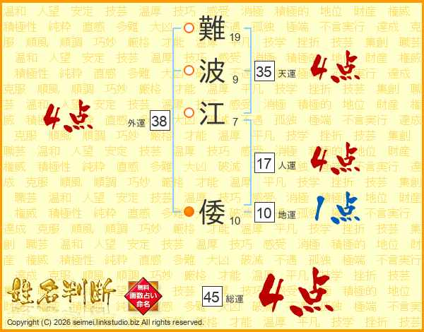 難波江倭さんの外運は38画の4点!