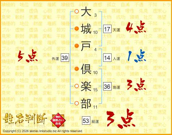 大城戸倶楽部さんの人運は14画の1点!