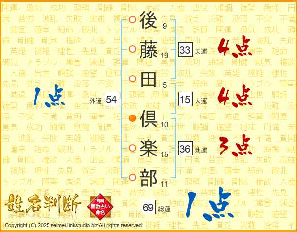後藤田倶楽部さんの天運は33画の4点!