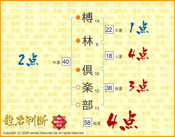 榑(14画)林(8画) 倶(10画)楽(15画)部(11画)