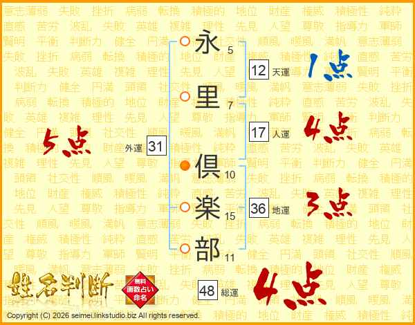 永里倶楽部さんの総運は48画の4点!
