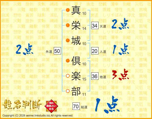 真栄城倶楽部さんの人運は20画の1点!
