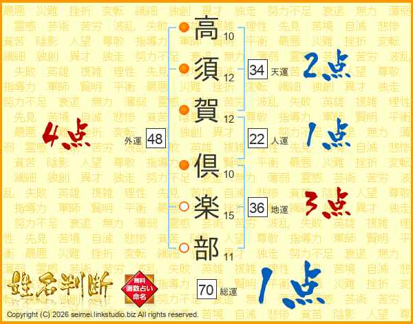 高須賀倶楽部さんの人運は22画の1点!
