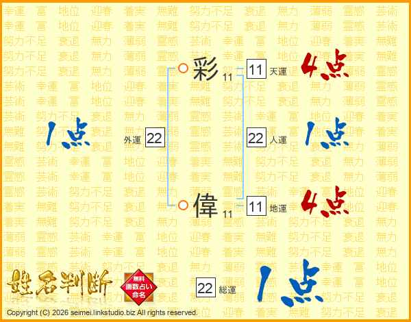 彩偉さんの総運は22画の1点!
