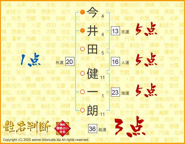 今井田健一朗さんの地運は23画の5点!