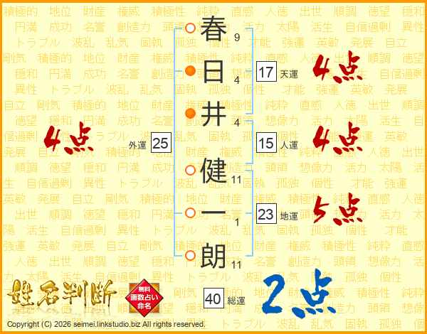春日井健一朗さんの総運は40画の2点!