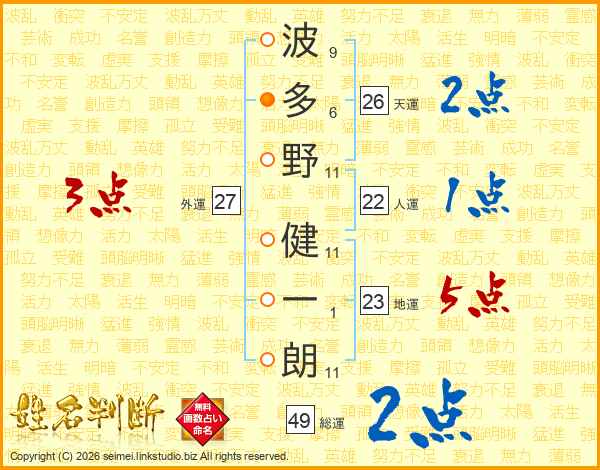 波多野健一朗さんの天運は26画の2点!