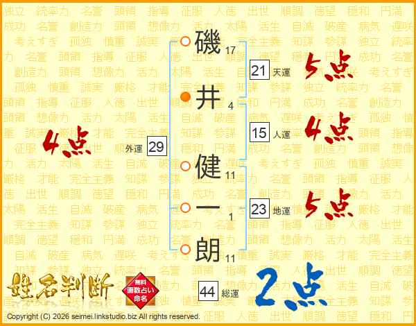 磯井健一朗さんの総運は44画の2点!