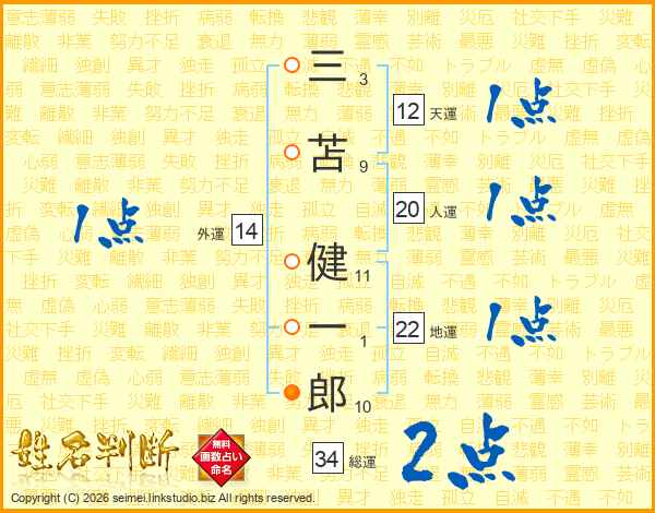 三苫健一郎さんの人運は20画の1点!