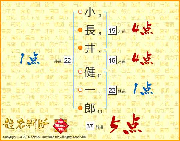 小長井健一郎さんの総運は37画の5点!