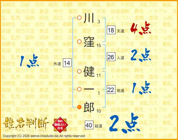 川窪健一郎さんの人運は26画の2点!