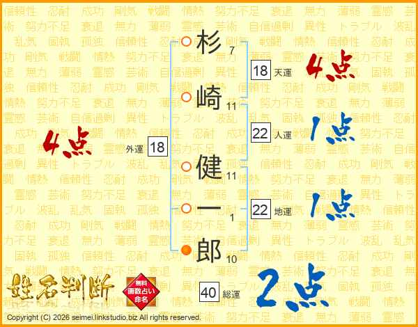 杉崎健一郎さんの人運は22画の1点!