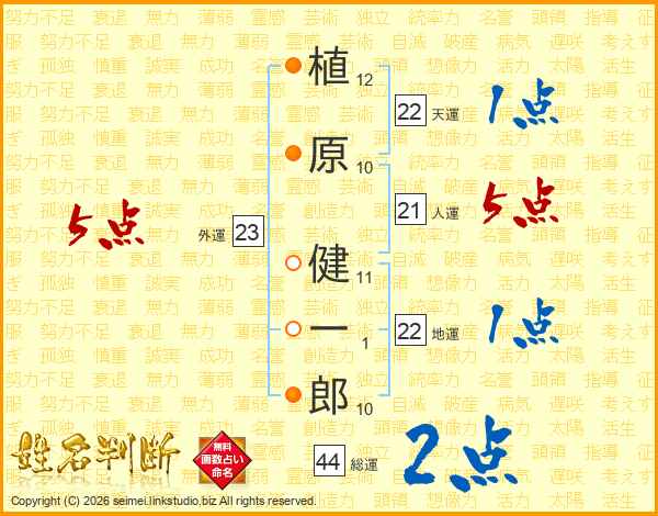 植(12画)原(10画) 健(11画)一(1画)郎(10画)