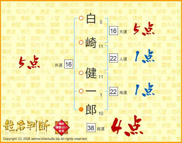 白崎健一郎さんの総運は38画の4点!