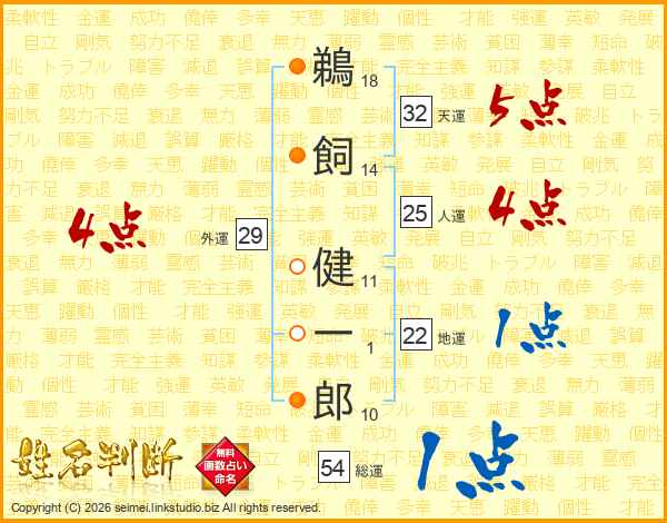 鵜飼健一郎さんの総運は54画の1点!