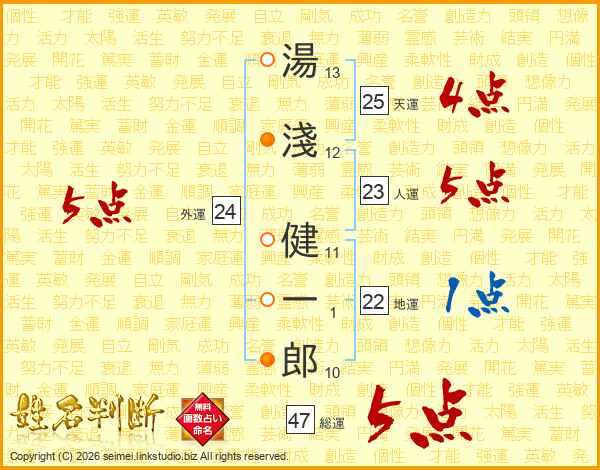 湯淺健一郎さんの総運は47画の5点!