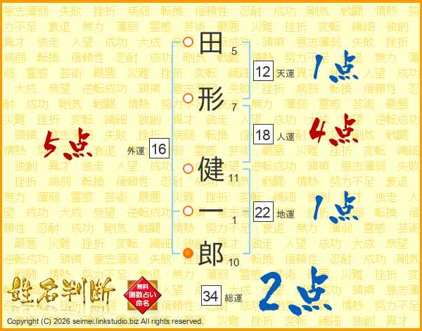 田形健一郎さんの総運は34画の2点!