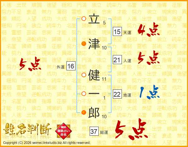 立津健一郎さんの総運は37画の5点!