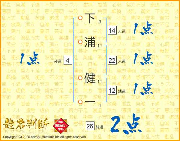 下浦健一さんの総運は26画の2点!