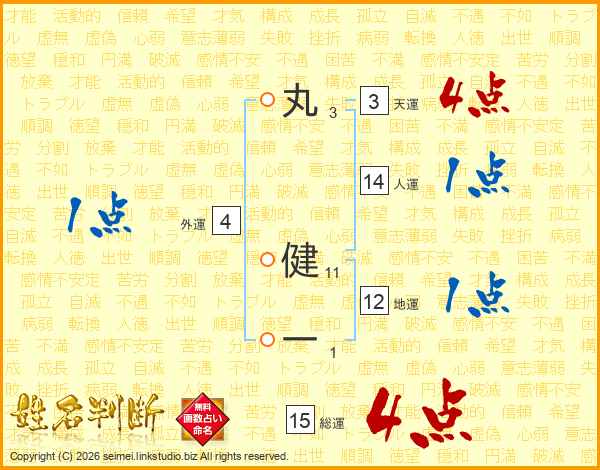 丸健一さんの総運は15画の4点!