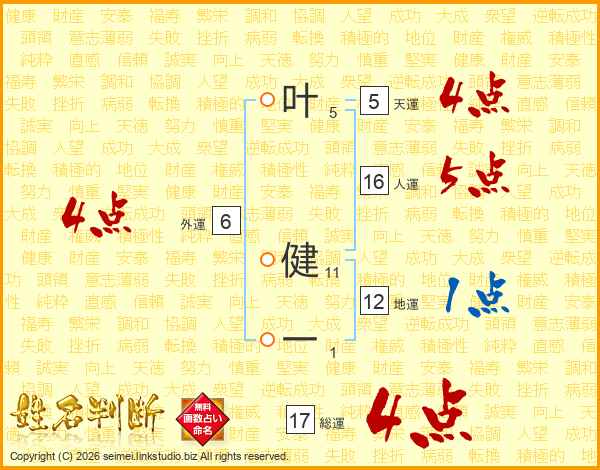 叶健一さんの総運は17画の4点!