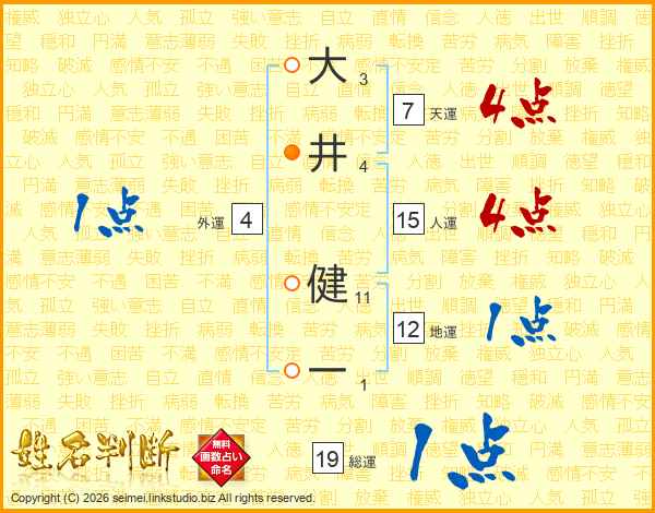 大井健一さんの人運は15画の4点!