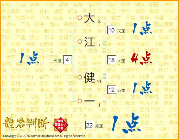 大江健一さんの総運は22画の1点!