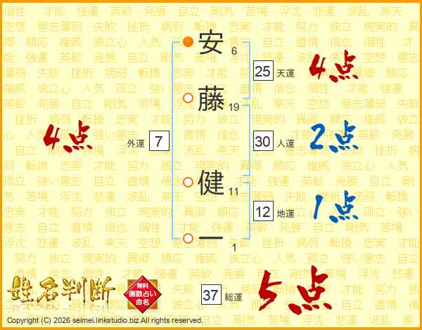 安藤健一さんの総運は37画の5点!