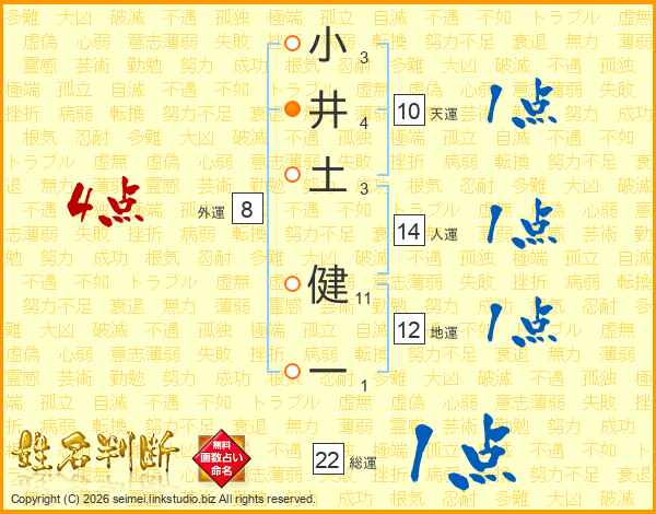 小(3画)井(4画)土(3画) 健(11画)一(1画)