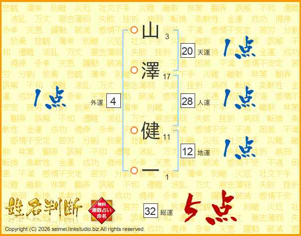 山澤健一さんの総運は32画の5点!