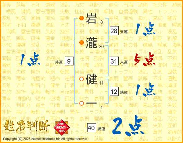 岩瀧健一さんの人運は31画の5点!