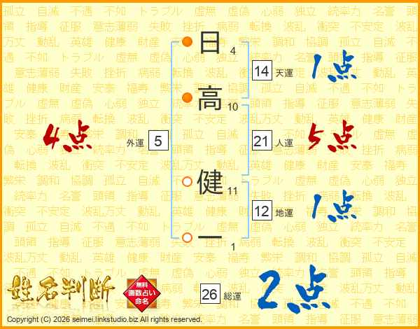 日高健一さんの総運は26画の2点!
