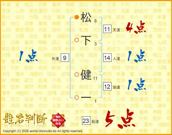 松下健一さんの総運は23画の5点!