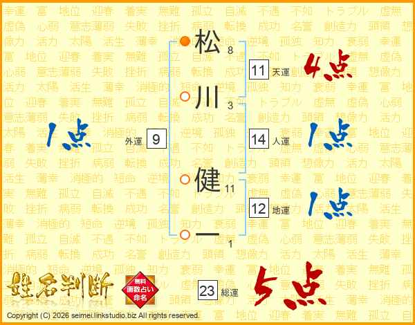 松川健一さんの天運は11画の4点!