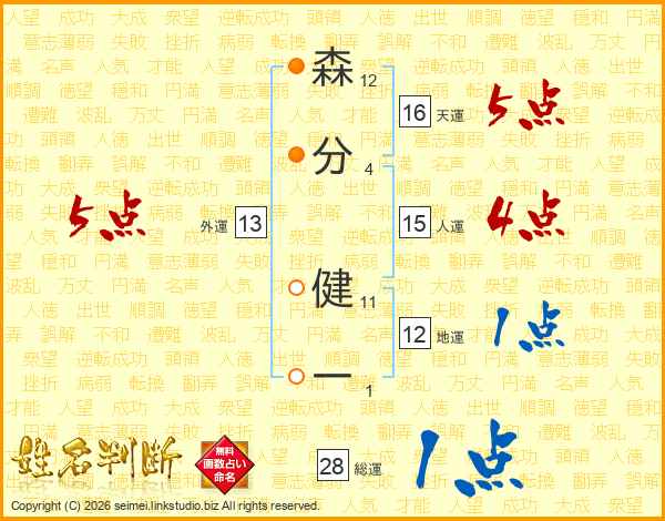 森分健一さんの総運は28画の1点!