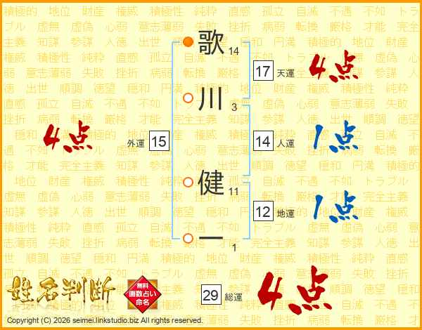 歌川健一さんの総運は29画の4点!