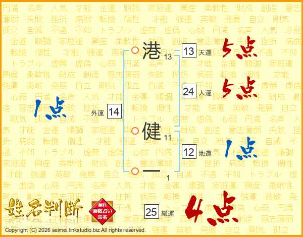 港健一さんの人運は24画の5点!