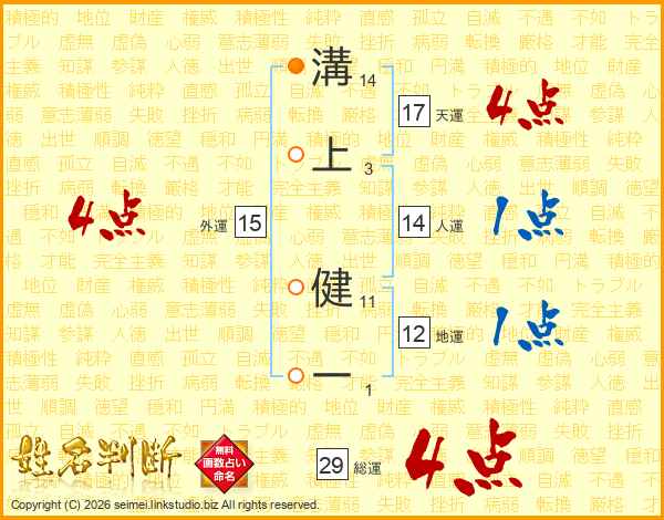 溝上健一さんの天運は17画の4点!