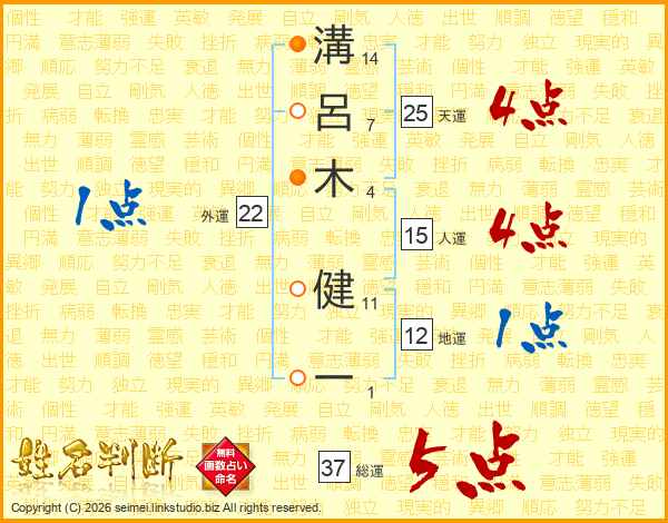 溝(14画)呂(7画)木(4画) 健(11画)一(1画)